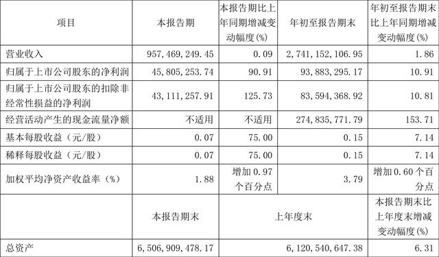 根據(jù)三季報,公司第三季度實現(xiàn)營業(yè)總收入9.57億元,同比增長0.09%,環(huán)比增長7.13%;歸母凈利潤4580.53萬元,同比增長90.91%,環(huán)比增長11.20%;扣非凈利潤4311.13萬元,同比增長125.73%,環(huán)比下降0.26%。