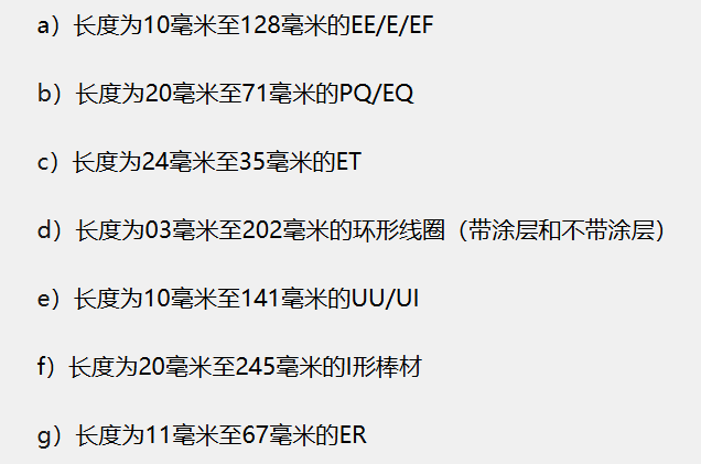 從形狀來看,涉及E/EE/EF/EQ/ER/ET/PQ/I/UI/UU和環(huán)形等多個常見磁芯形狀;